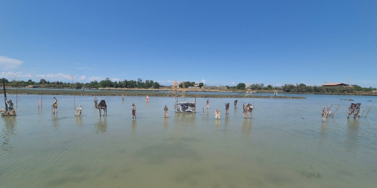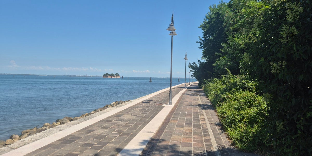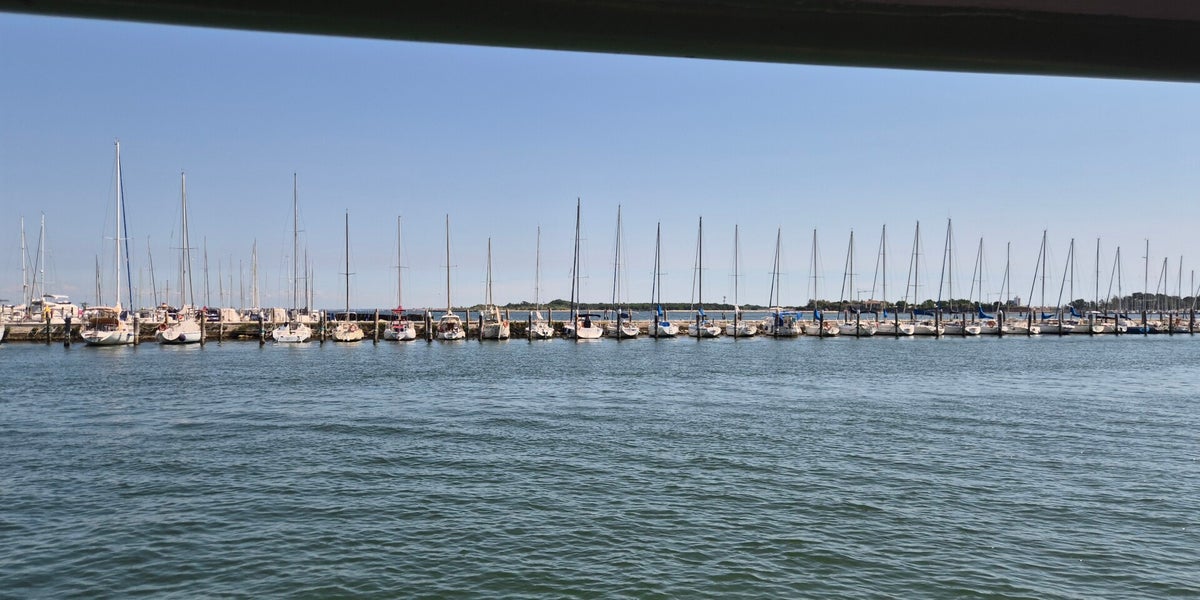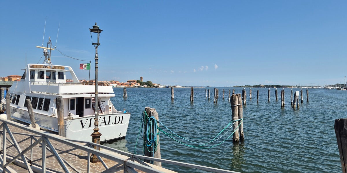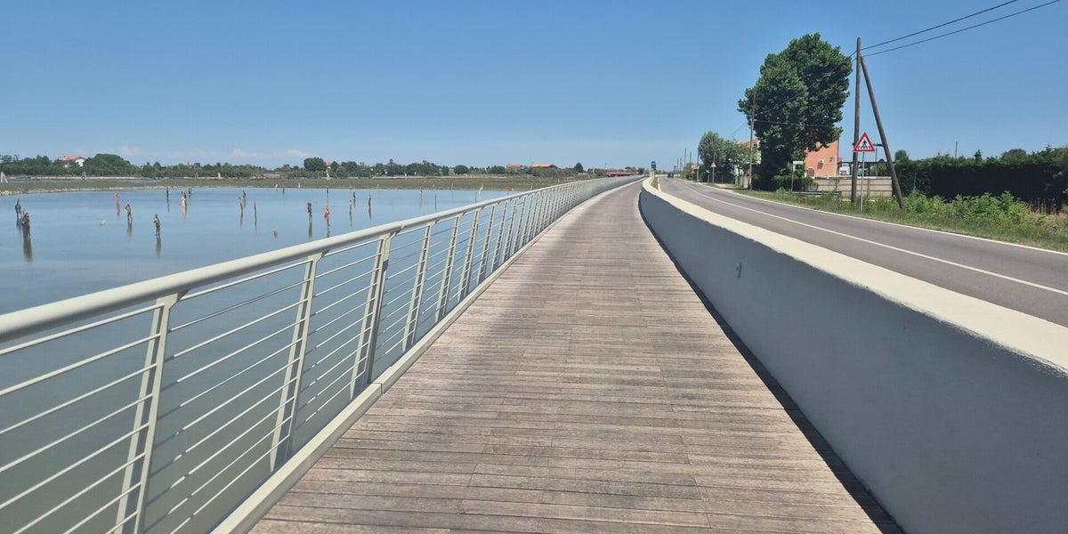 Naast fietsen staat vandaag ook varen op het programma. Mijn nieuwe bestemming is Trieste, dat ik in enkele etappes wil bereiken. Daarvoor moet ik dan wel eerst drie veerpontjes nemen om me een omweg van zowat 150 kilometer te besparen. Het eerste vaart vanuit Chioggia, een soort mini-Venetië. Aan de opstapplaats koop ik mijn ticket voor de drie overzetten (€ 29,50, fiets inclusief) en stap meteen op de boot die klaar staat en al goed vol zit. Ik mag mijn fiets tegen die van Andrea plaatsen, een vriendelijke Italiaan, die me uitlegt welke route ik best volg om zo min mogelijk in volle zon te rijden. Amper één minuut na het boarden, vertrekt de boot! Timing is alles! De overzet verloopt erg vlot en na amper een kwartiertje fiets ik van de boot op het smalle eilandje Pellestrina.