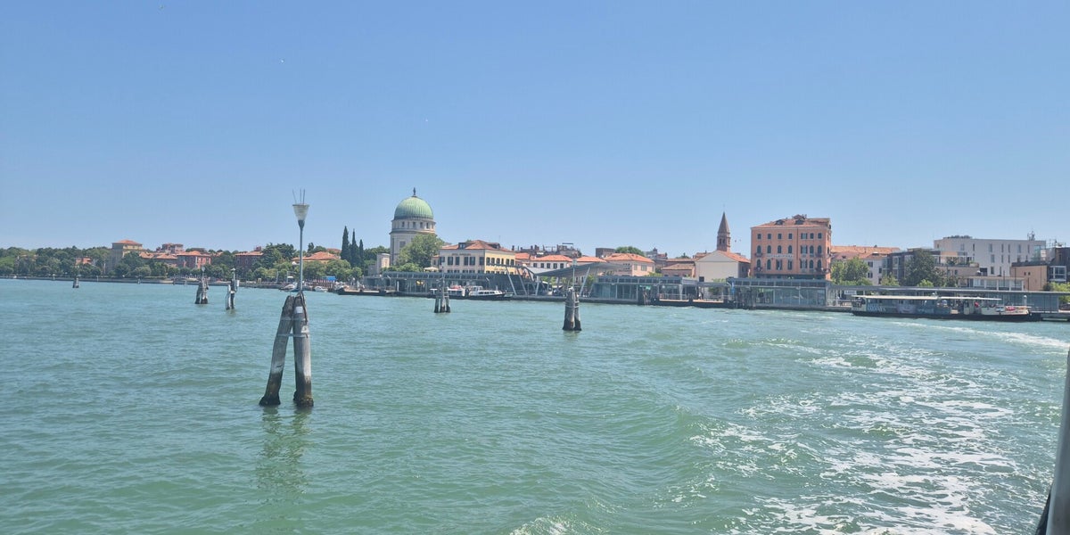 De laatste boot brengt me tot in Punta Sabbioni. Tijdens deze overzet, kan je Venetië erg goed zien liggen en ik geniet van het mooie uitzicht.