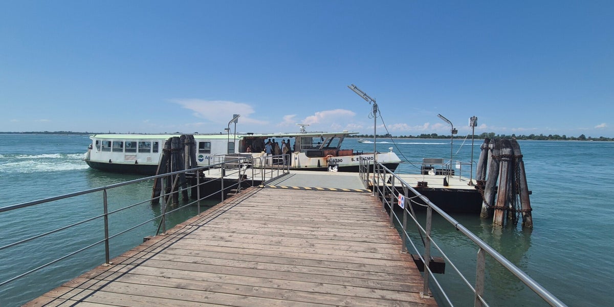 De tweede overzet brengt me tot het eiland Lido di Venezia. Vanuit de boot kan je Venetië dan al in de verte zien liggen, maar het is pas bij het aankomen bij de volgende 'haven', om van Lido naar, in mijn geval, Punta Sabbioni te varen, dat je er echt een mooi zicht op krijgt. Dit keer minder geluk. Mijn overzet is net vertrokken, maar niet getreurd, om het half uur vaart er zo'n ding.