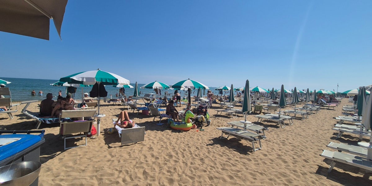 Ik fiets nog ongeveer 30 km verder en hou het dan voor bekeken in Lido di Jesolo, weliswaar na wat zoekwerk voor een keurige overnachtingsplaats. Ik verblijf vanavond in Hotel Souvenir dat letterlijk tegen het strand ligt. Het uitzicht van op mijn balkon betreft een parasolvol strand en zo ver het oog kan reiken de azuurblauwe zee.