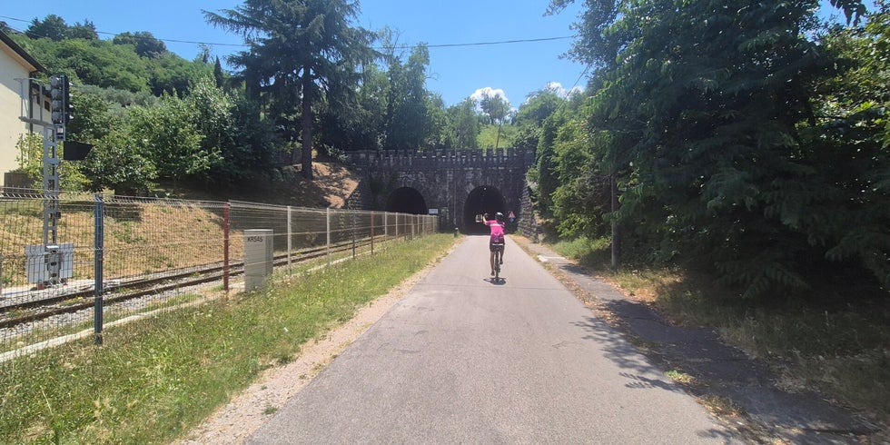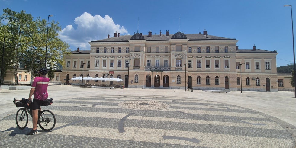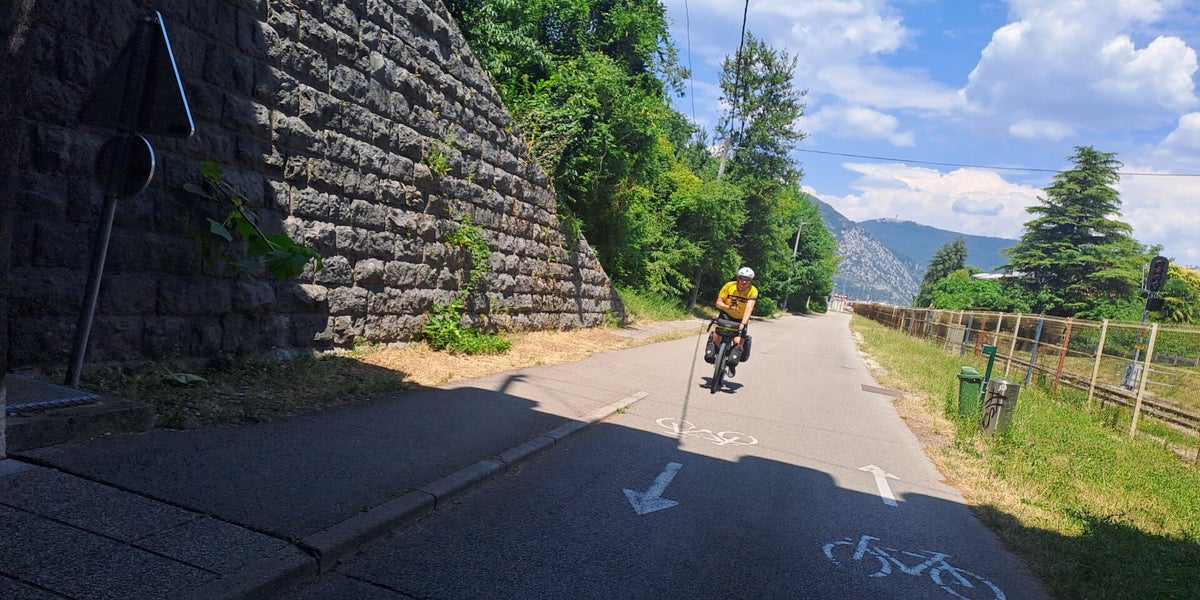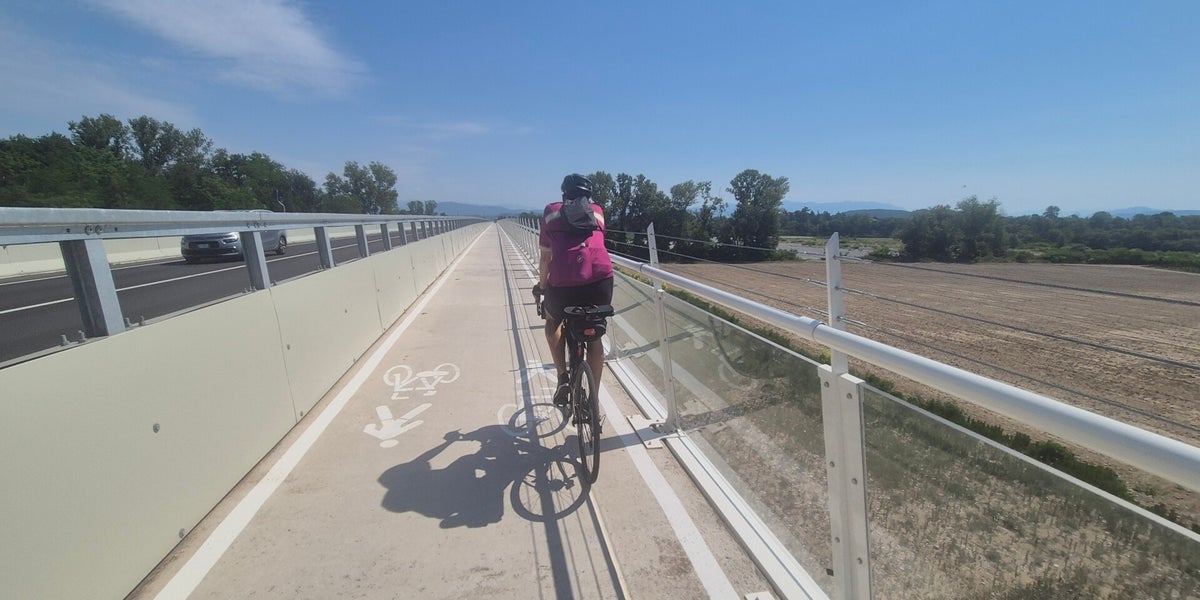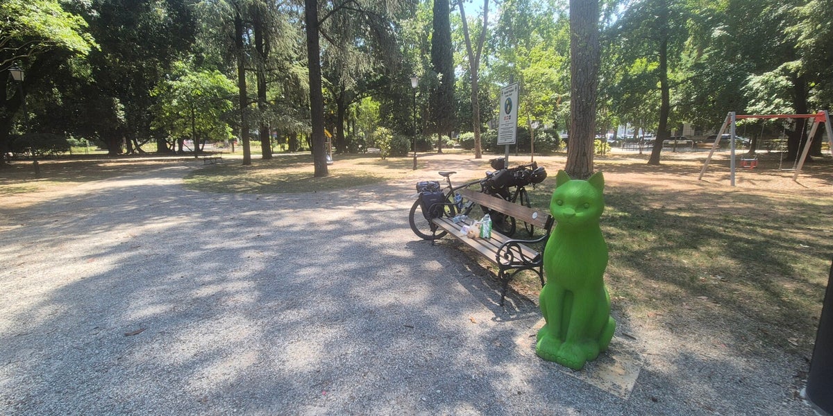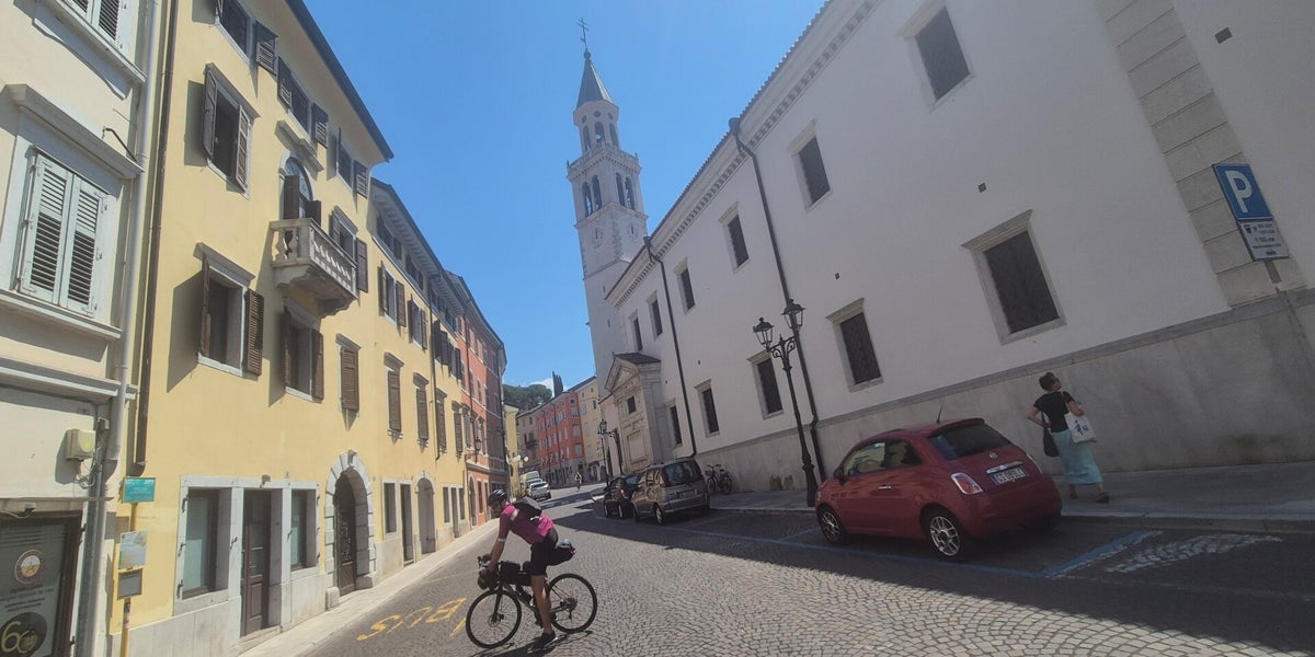 Ik ben Mihai dan ook dankbaar dat hij met zijn rit via deze bijzondere steden kwam aandraven. Ze kennen een prachtige geschiedenis, maar het zijn ook geweldige plaatsen om te bezoeken! We bezoeken er de leukste plaatsen, waaronder het Piazza della Vittoria waar er ook een supermoderne en zeer verkoelende tunnel gebouwd is die de 2 steden verbindt, maar deze is helaas tijdelijk afgezet door werken. Het Piazza Transalpina in Nova Gorica kunnen we dan gelukkig toch bereiken via een oudere tunnel langs de spoorweg. Tussenin lunchen we in een parkje in Gorizia. We eten er fruit, sandwiches en chips en vullen er onze bidonnen met ijskoud water alvorens onze tocht verder te zetten.