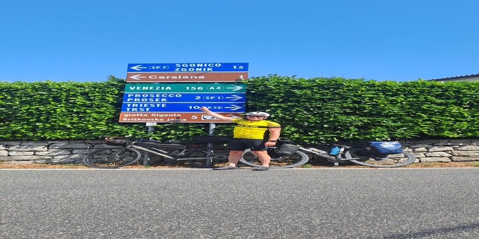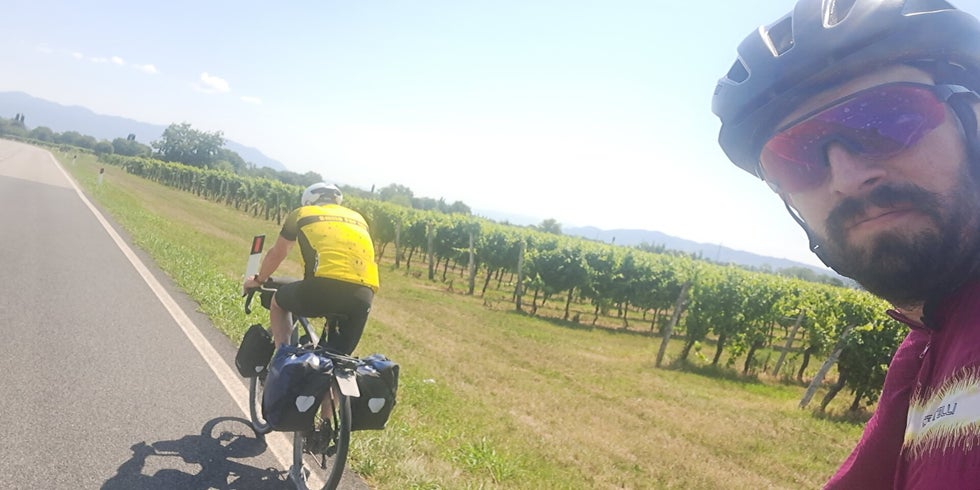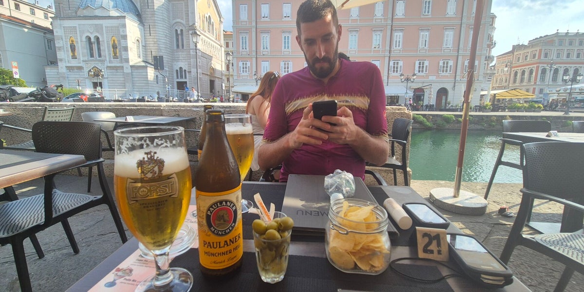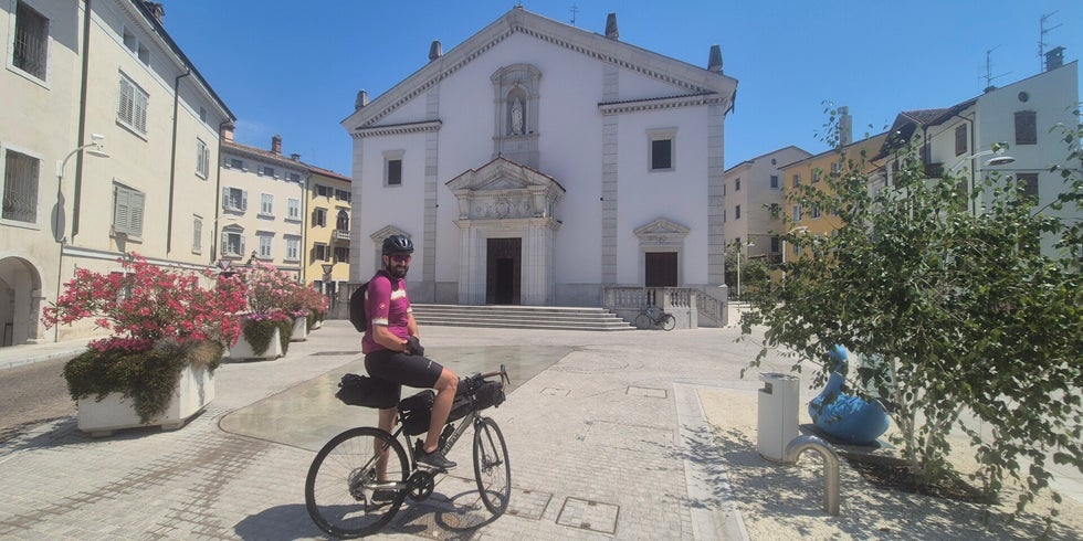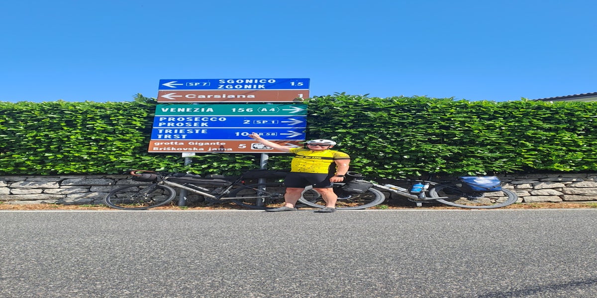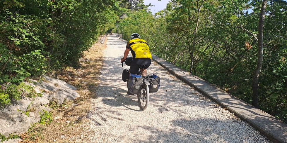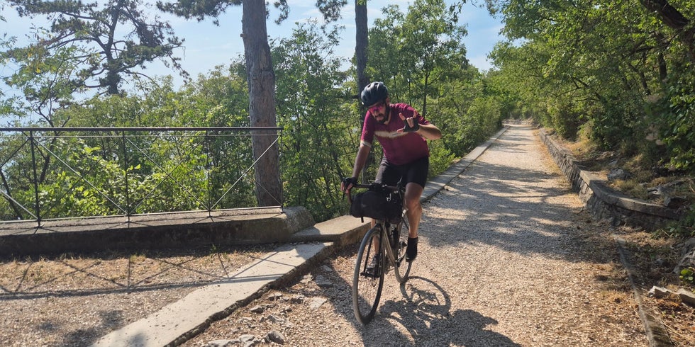 Deze keer is het anders. Ik ga samen met Mihai, de Roemeense bikepacker, die ik gisteren ontmoette tijdens het inchecken, naar Trieste! We volgen de route die hij heeft uitgestippeld en die is een pak zwaarder dan mijn kortere-langs-de-zee-route-zonder-hoogtemeters. Maar ik heb toch veel zin om, in gezelschap, de 85 km mét enkele klimmetjes te voltooien.