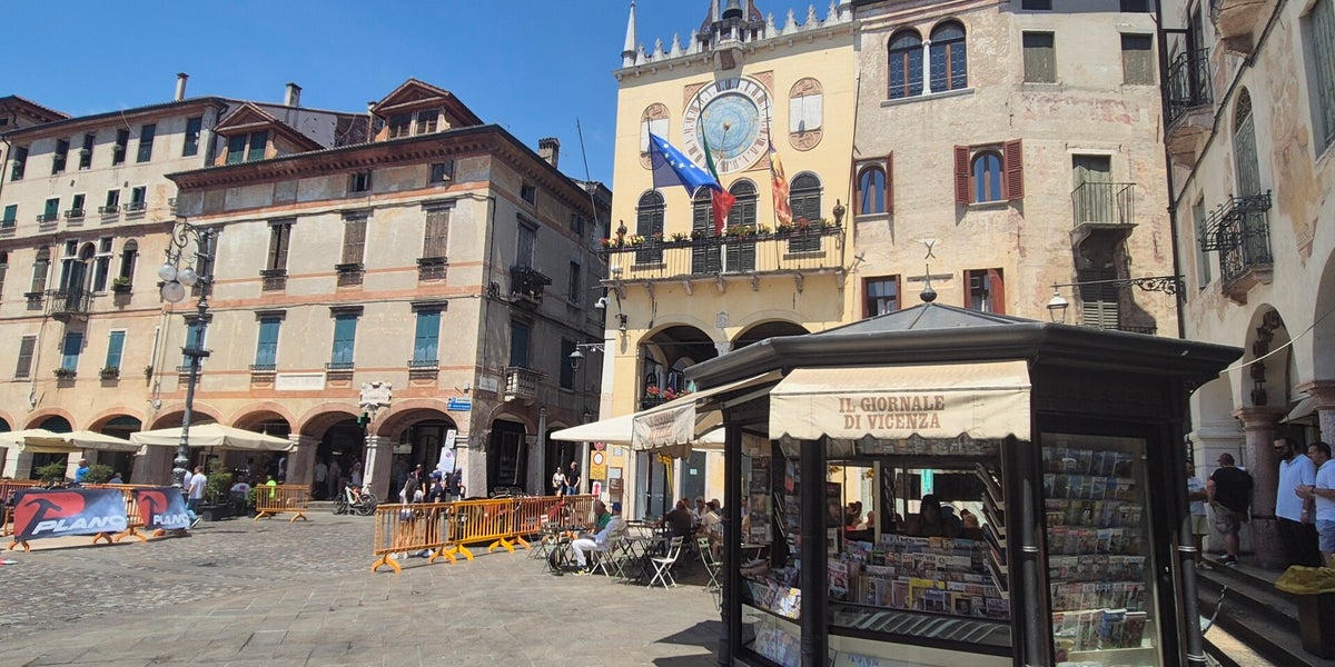 Zo fris en monter als je dat op zo'n moment nog kan noemen, rij ik naar de eindmeet en om klokslag 16u parkeer ik mijn vehikel in een galerij van de Piazza dei Signori. Bij Bar Borsa bestel ik limonade, bier en de Borsa Burger! Ik herkom helemaal!